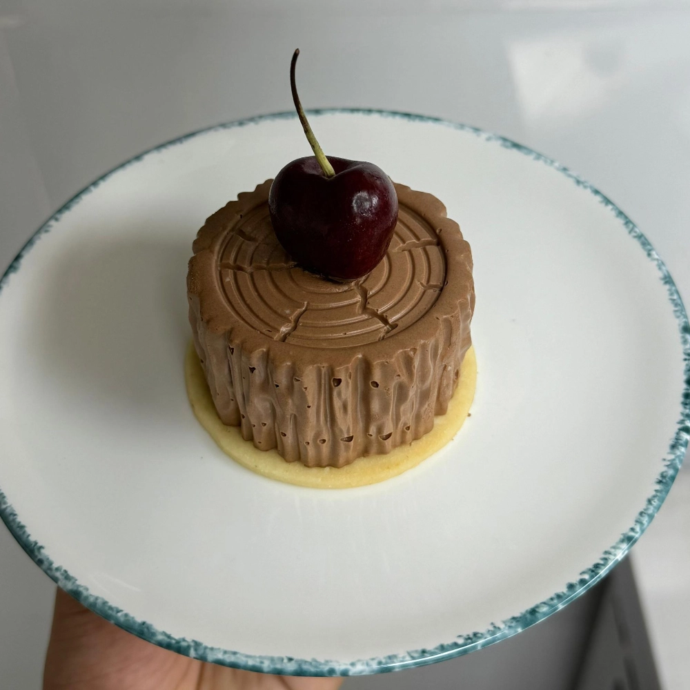 Light chocolate mousse, mascarpone cream, cherry confit, chocolate viennese sponge.