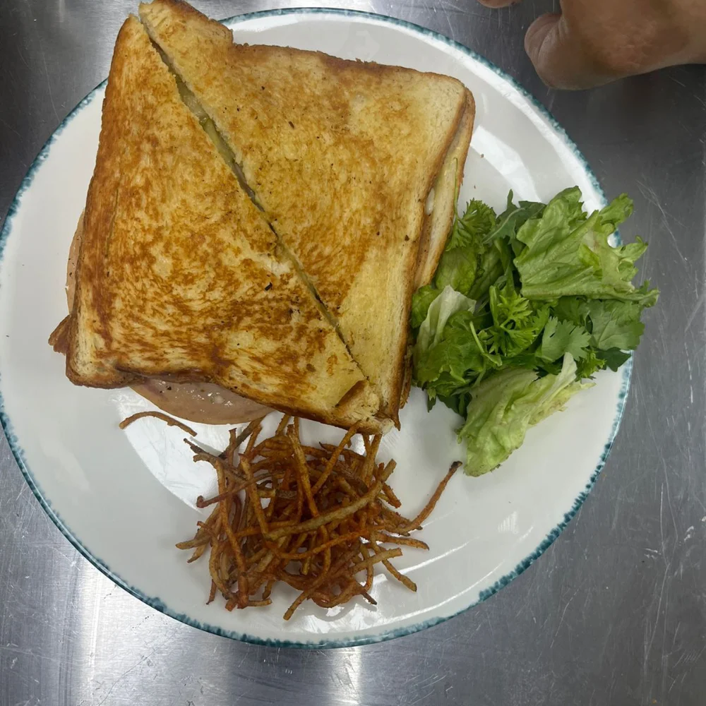 Milk Bread, Cheese Sauce, Gouda Cheese, Mozzarella, Spicy Mayo, House Salad, Pepper Vinaigrette, Potato Salli.