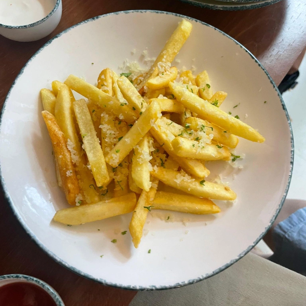 Fries, Truffle Oil + Parmesan + Salt + Parsley, Peri Peri + Parsley + Salt, Salted.